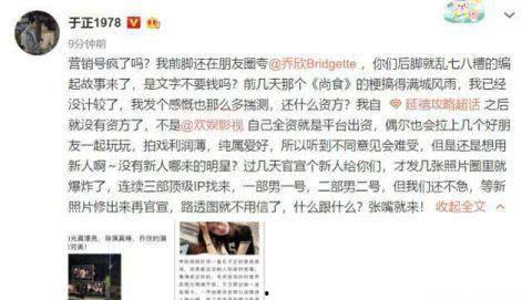 最近娱乐圈可是炸开了锅,咱们聊聊那两位风头正劲的于正和乔欣吧!他们最近可是有了一大波爆料,让人忍不住想要一探究竟。咱们就跟着热点,一起看看他们都说了些什么吧!